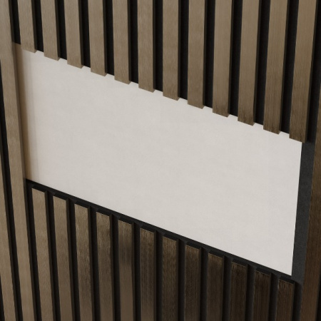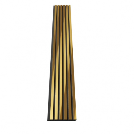 Акустические панели Cosca decor – это уникальный по функционалу декоративно-отделочный материал: - акустический комфорт в помещении без эха и шума снаружи; - современный дизайн; - легкий самостоятельный монтаж даже поверх старых обоев. Основа панелей – акустический войлок 9мм. Изготовлен из экологичного волокна, устойчив к влаге, долговечен, воздухопроницаем, подавляет и преломляет звуковые волны. Коллекция ЭМИРАТЫ Декор панелей – рейки из ЭКОПОЛИМЕРА, облицованные металлизированными пленками методом термопереноса: влагостойкие и ударопрочные. Блестящие полированные поверхности усиливают естественный свет, делая пространство больше и ярче, придавая статус и респектабельность интерьеру. Размер реек 30х10мм, расстояние между рейками 20мм. Широкая цветовая гамма из 8 цветов: хром, хром матовый, желтое золото, золото матовое, красная медь, шампань, черное зеркало. Ширина панелей 300мм. Панели продаются комплектами по 2 шт.