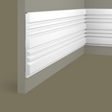 Классический настенный молдинг со спокойными завитками. Может быть использован для отделки нижней части плинтуса. Примечания: Используйте DecoFix Pro или DecoFix Power. Для крепления к стене должны использоваться шурупы. Flex Radius: R min = 20 cm, R* min = 80 cm
